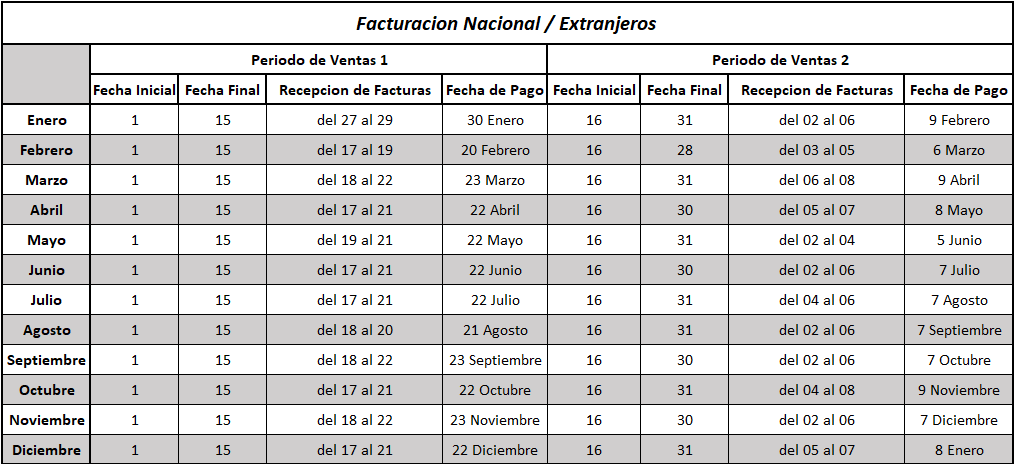 Los pagos de las comisiones se realizarán en las fechas establecidas en el calendario de pagos presentado a continuación. Esta forma de realizar los cortes y pagos nos permite fácilmente, tanto a Enagic como a los distribuidores, saber si una venta entrará en el corte y si se pagará en la fecha esperada. Para fines del pago de comisiones, Enagic de México no se hace responsable de ventas que hayan sido entregadas y completadas fuera de los tiempos y horarios determinados por la compañía para el pago de una determinada quincena. Es decir, es responsabilidad del distribuidor y del cliente estar conscientes de este calendario y de las fechas en las que una venta ingresa al sistema. A continuación, presentamos el calendario de fechas: